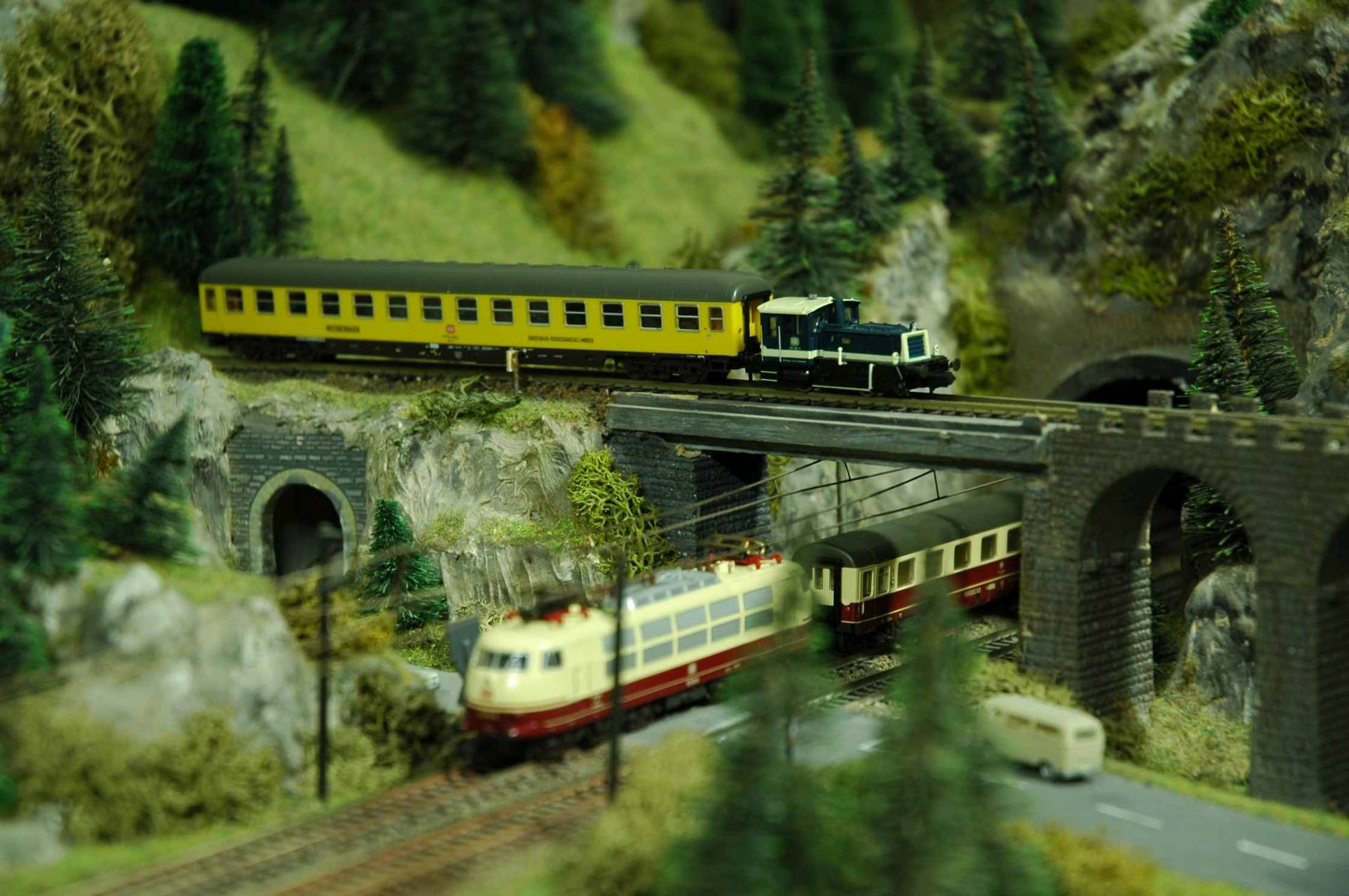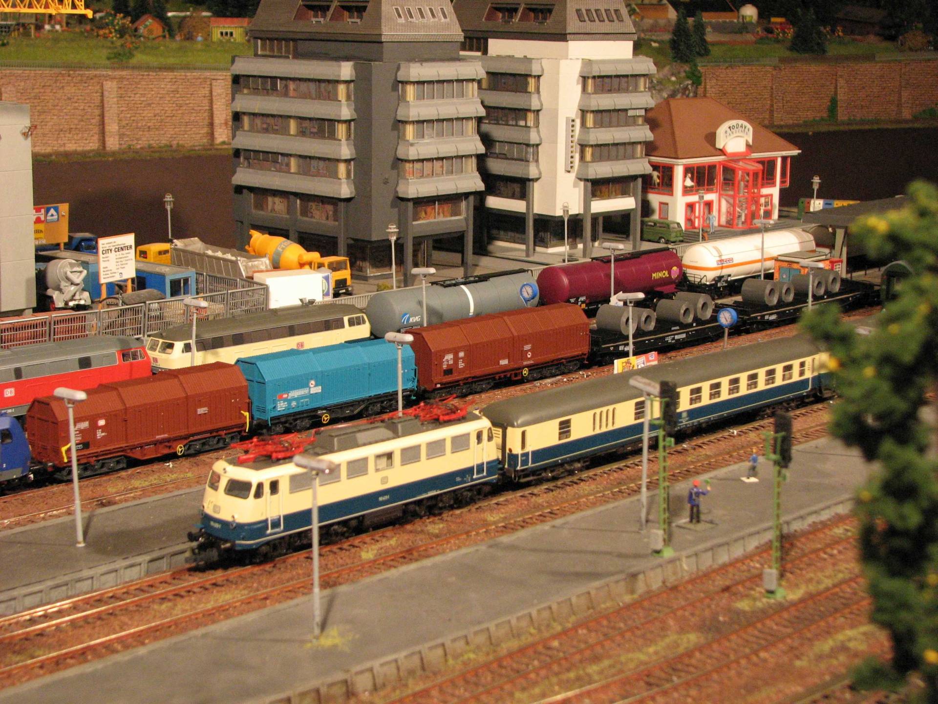Die Anlage Spur H0 entstand als zweite Großanlage unseres Clubs, im ersten Stock des Vereinsheims. Die Buchstaben „H0“ (sprich „ha null; halb Null) stehen als Normbezeichnung für den Verkleinerungsmaßstab 1:87, der in Deutschland populärsten Baugröße.